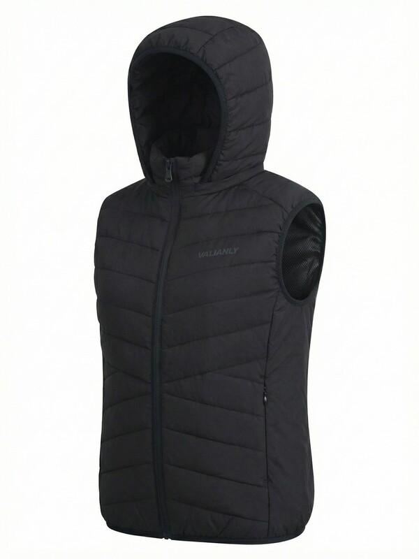 Женский лёгкий стёганый жилет Valianly с капюшоном черного цвета 9636_2Ch