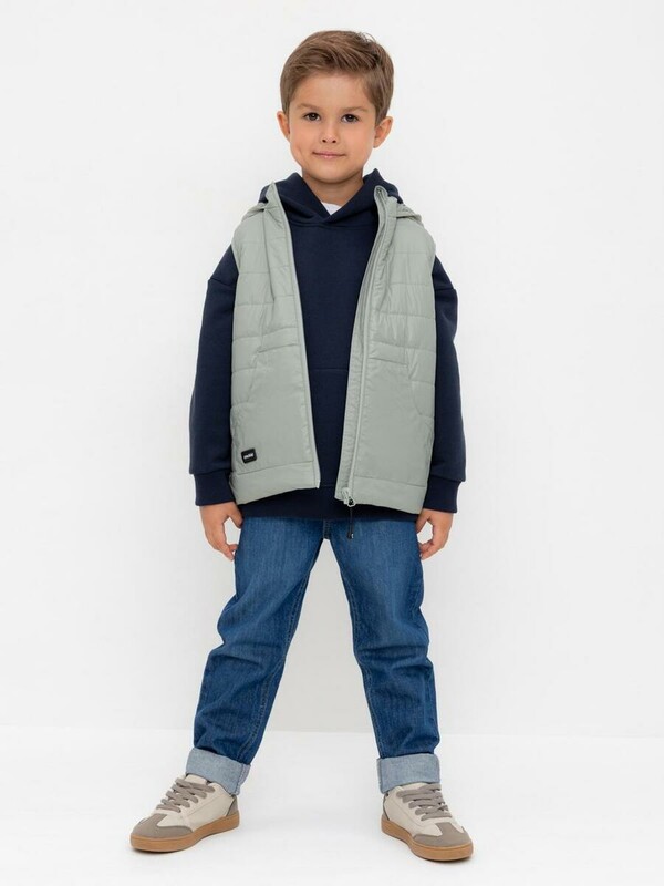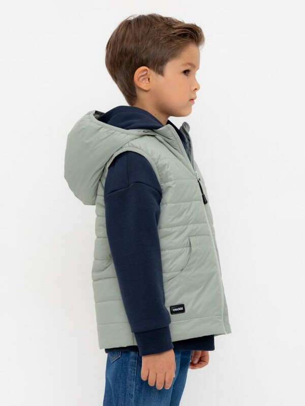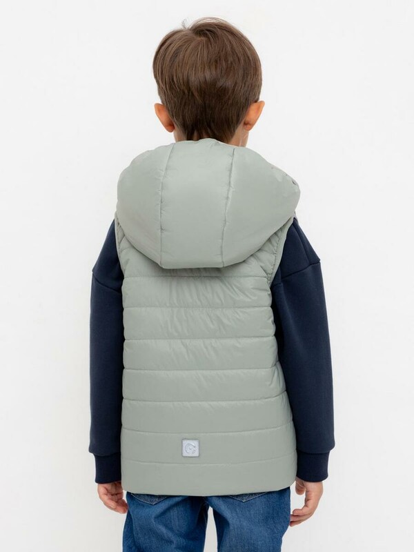 Стеганый жилет с капюшоном для мальчика с утеплителем Fellex®: 120 г/м2. Выполнен из мембранной ткани с дополнительной тефлоновой обработкой. Данный вид обработки предохраняет изделие от загрязнения и лучше отводит влагу. Подклад: 60% хлопок и 40% полиэстер на размерах 86-92 и 92-98 и 100% полиэстер на остальных размерах. У изделия предусмотрена защита подбородка. Спереди два кармана. Во всех изделиях верхнего ассортимента для безопасности ребенка предусмотрены светоотражающие элементы.