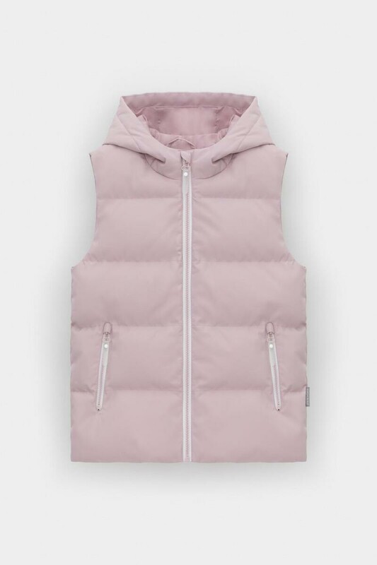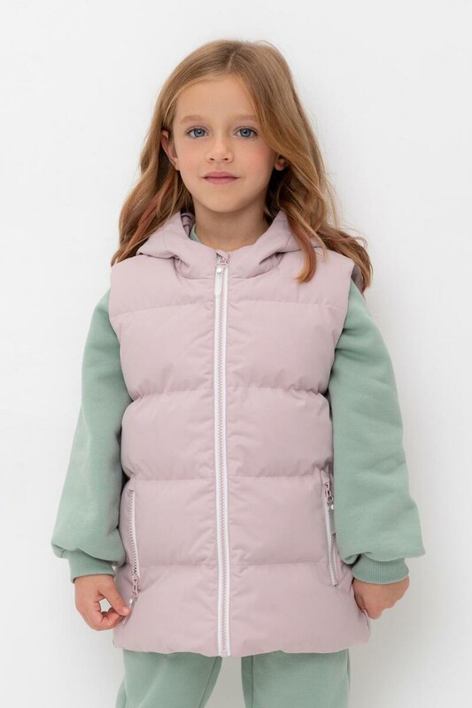 Стеганый жилет с капюшоном для девочки с утеплителем Fellex®: 120 г/м2. Выполнен из мембранной ткани с дополнительной тефлоновой обработкой. Данный вид обработки предохраняет изделие от загрязнения и лучше отводит влагу. Подклад из 100% полиэстра. Капюшон не снимается. Изделие застёгивается на молнию, предусмотрена защита подбородка. Два кармана по бокам застёгиваются на молнии. Во всех изделиях верхнего ассортимента для безопасности ребенка предусмотрены светоотражающие элементы.