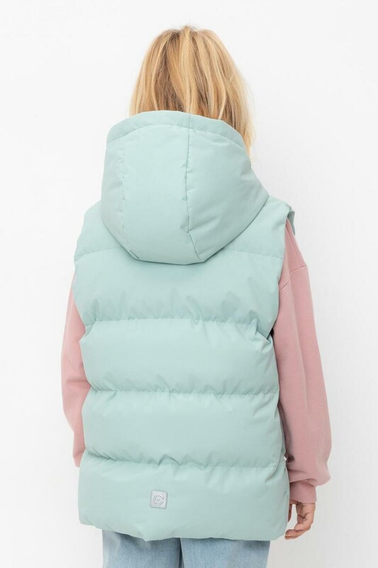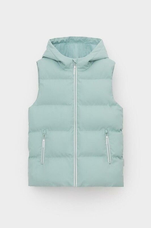 Стеганый жилет с капюшоном для девочки с утеплителем Fellex®: 120 г/м2. Выполнен из мембранной ткани с дополнительной тефлоновой обработкой. Данный вид обработки предохраняет изделие от загрязнения и лучше отводит влагу. Подклад из 100% полиэстра. Капюшон не снимается. Изделие застёгивается на молнию, предусмотрена защита подбородка. Два кармана по бокам застёгиваются на молнии. Во всех изделиях верхнего ассортимента для безопасности ребенка предусмотрены светоотражающие элементы.