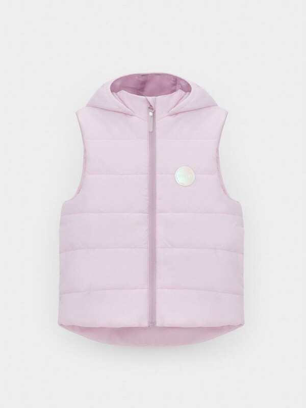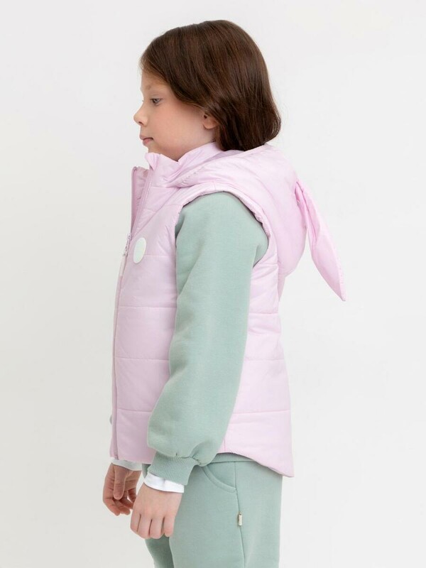Стеганый жилет с капюшоном для девочки с утеплителем Fellex®: 120 г/м2. Выполнен из мембранной ткани с дополнительной тефлоновой обработкой. Данный вид обработки предохраняет изделие от загрязнения и лучше отводит влагу. Подклад: 60% хлопок и 40% полиэстер (на размерах 86-98), 100% полиэстер (на размерах 98-128). У изделия предусмотрена защита подбородка. По бокам два кармана. Во всех изделиях верхнего ассортимента для безопасности ребенка предусмотрены светоотражающие элементы.