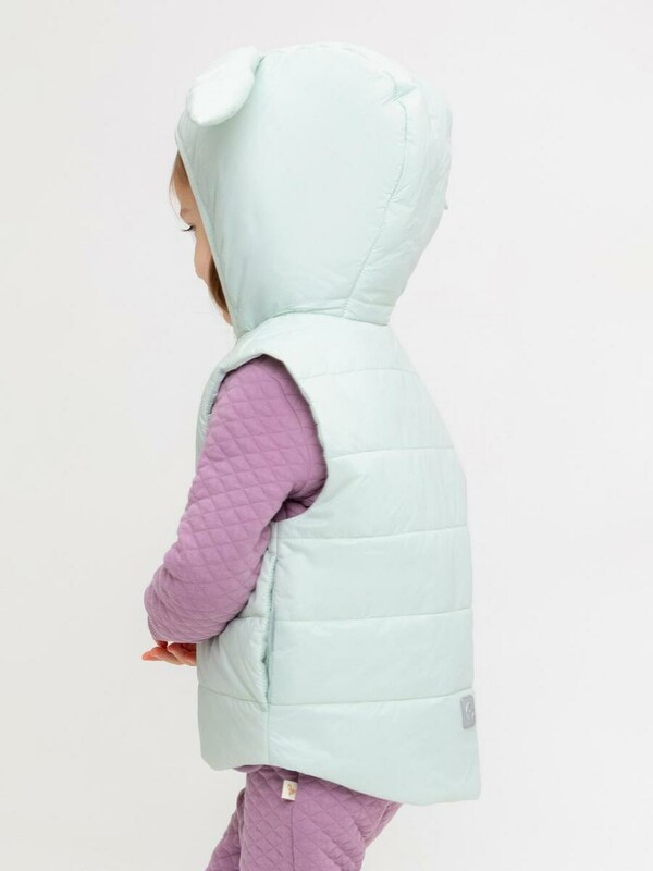 Стеганый жилет с капюшоном для девочки с утеплителем Fellex®: 120 г/м2. Выполнен из мембранной ткани с дополнительной тефлоновой обработкой. Данный вид обработки предохраняет изделие от загрязнения и лучше отводит влагу. Подклад: 60% хлопок и 40% полиэстер (на размерах 86-98), 100% полиэстер (на размерах 98-128). У изделия предусмотрена защита подбородка. По бокам два кармана. Во всех изделиях верхнего ассортимента для безопасности ребенка предусмотрены светоотражающие элементы.