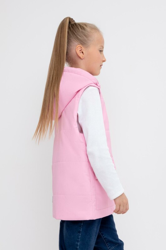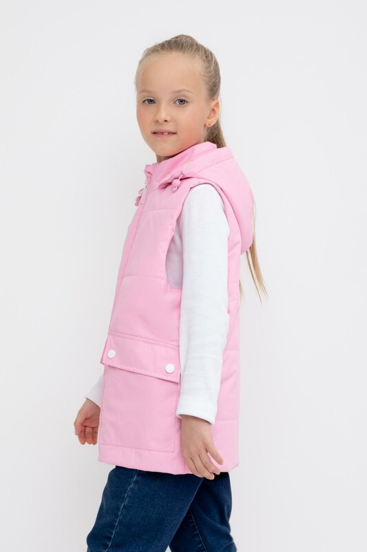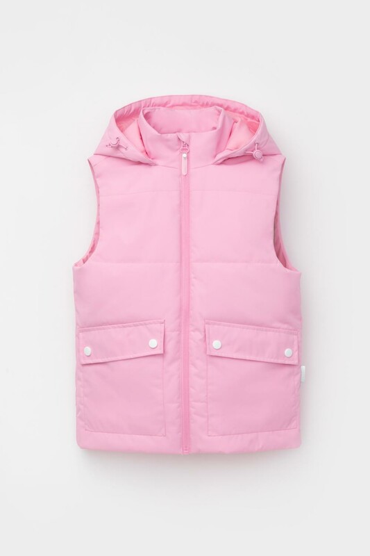 Стеганный жилет с капюшоном для девочки с утеплителем Fellex®: 120 г/м2. Выполнен из мембранной ткани с дополнительной тефлоновой обработкой и матовым покрытием. Данный вид обработки предохраняет изделие от загрязнения и лучше отводит влагу. Подклад из 100% полиэстра. У изделия предусмотрена защита подбородка. Накладные карманы с клапанами на кнопках. Во всех изделиях верхнего ассортимента для безопасности ребенка предусмотрены светоотражающие элементы.