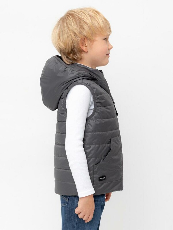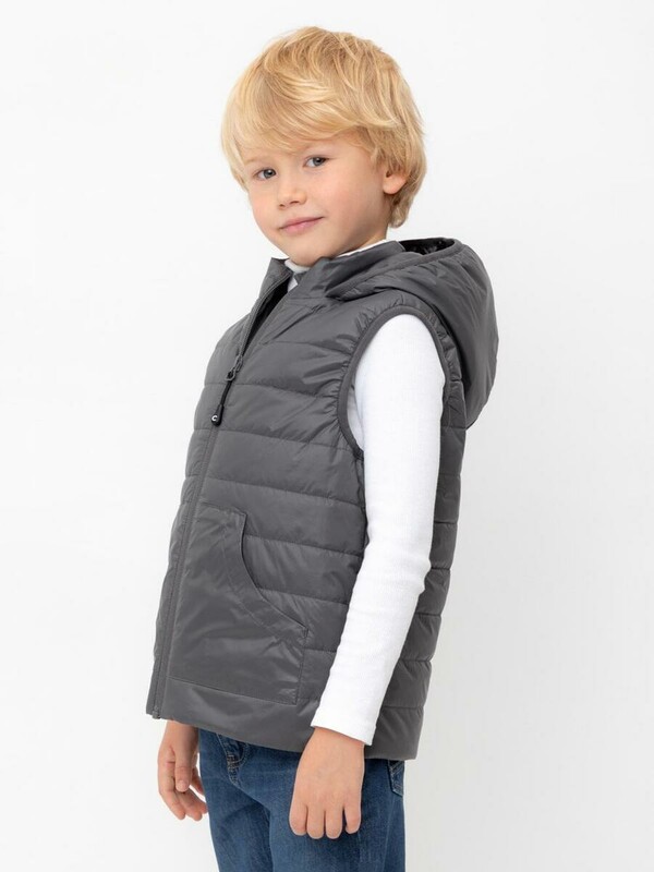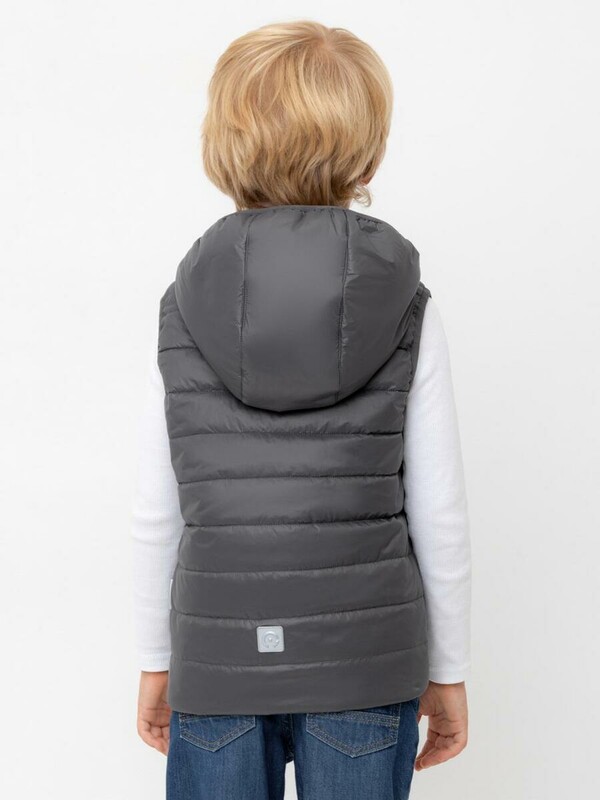Стеганый жилет с капюшоном для мальчика с утеплителем Fellex®: 120 г/м2. Выполнен из мембранной ткани с дополнительной тефлоновой обработкой. Данный вид обработки предохраняет изделие от загрязнения и лучше отводит влагу. Подклад: 60% хлопок и 40% полиэстер на размерах 86-92 и 92-98 и 100% полиэстер на остальных размерах. У изделия предусмотрена защита подбородка. Спереди два кармана. Во всех изделиях верхнего ассортимента для безопасности ребенка предусмотрены светоотражающие элементы.