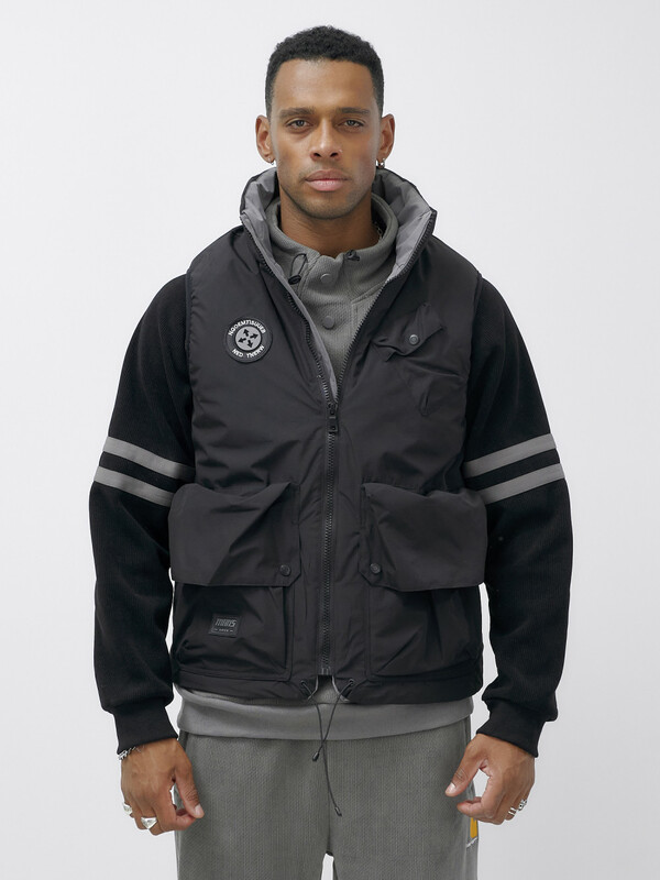 - Утягивающая кулиса по низу жилета: Позволяет регулировать посадку по фигуре, предотвращая попадание холодного воздуха внутрь.