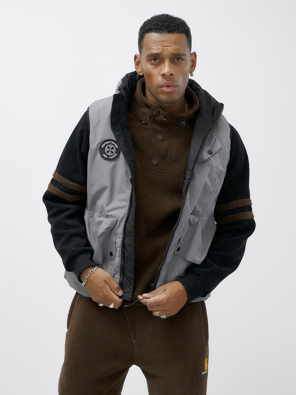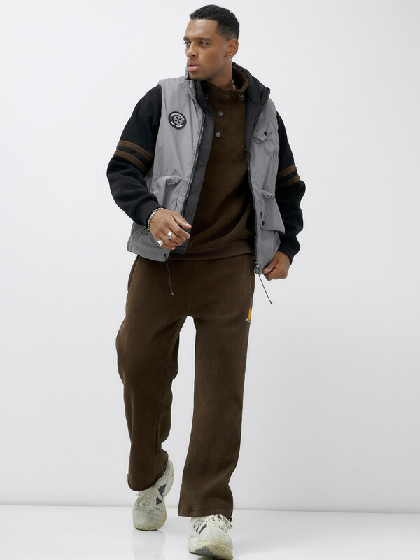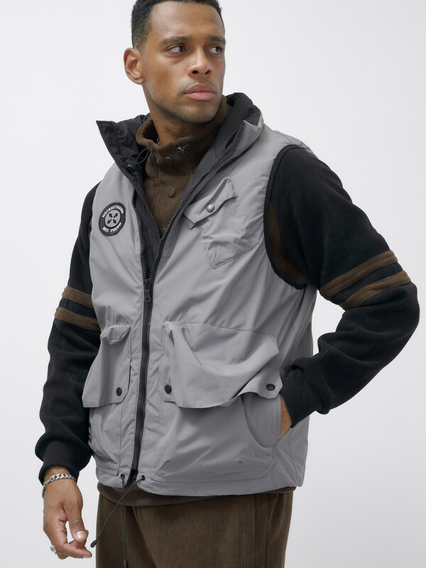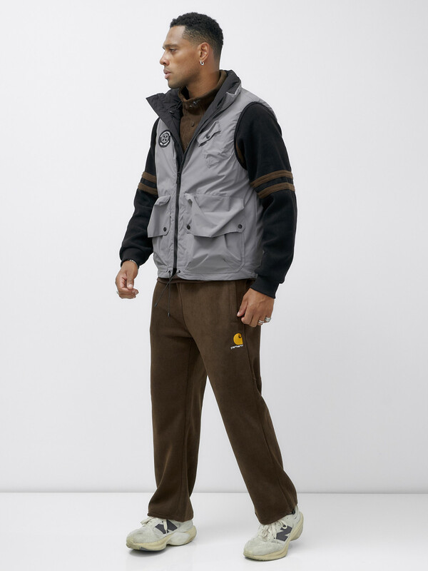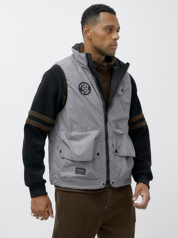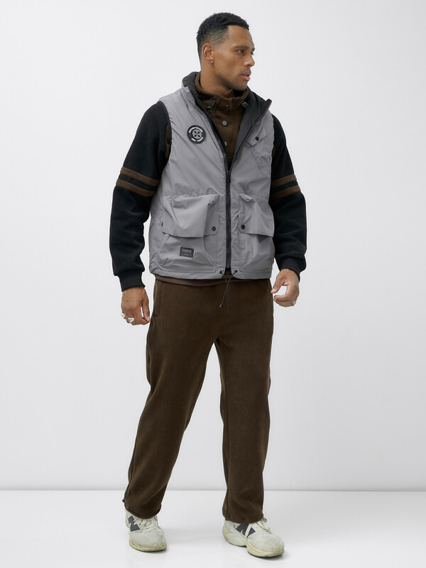 Главная страница - Каталог - Мужская одежда - Мужская верхняя одежда - Мужская верхняя одежда весна-осень - Жилет мужской утепленный спортивный серого цвета 15323Sr