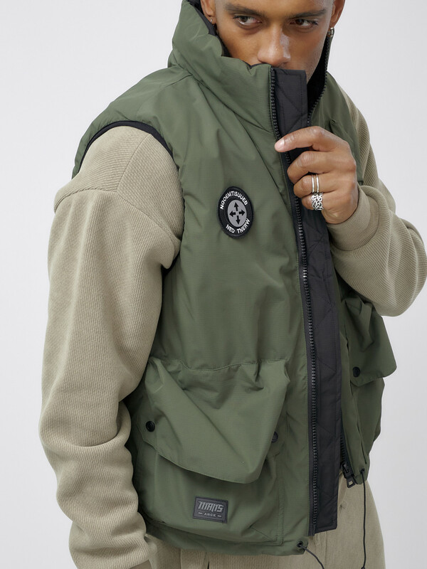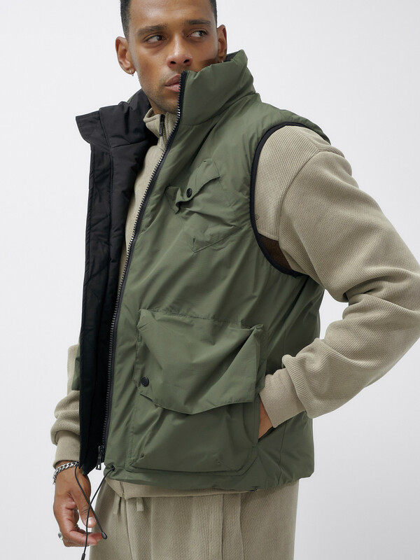 - Утягивающая кулиса по низу жилета: Позволяет регулировать посадку по фигуре, предотвращая попадание холодного воздуха внутрь.