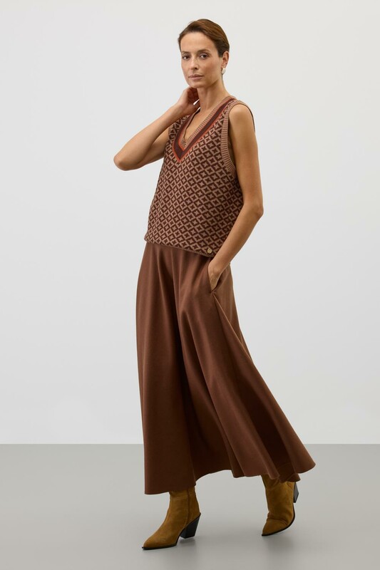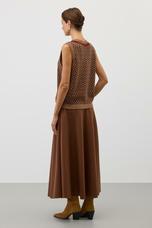 Жилет в кантри-стиле, изготовленный из высококачественной пряжи с применением передовой технологии смешанных волокон. Изысканное сочетание шерсти и акрила создает непревзойденный комфорт: модель деликатно подчеркивает силуэт, обеспечивает нежное прикосновение к коже и сохраняет безупречный внешний вид.