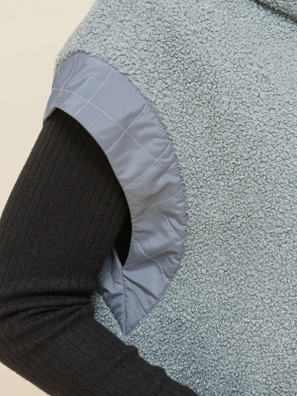 Женский жилет из модного бербер-флиса (мягкая фактура «барашка»). Жилет оверсайз-силуэта со спущенным плечом подарит вам комфорт и свободу движения. Высокий воротник-стойка и удобный капюшон защитят от холода и ветра. Объём капюшона можно регулировать внутренним эластиком со стопперами. Изделие дополнено накладными карманами, отстроченными в крупную клетку — актуально в этом сезоне. Застёжка на длинную молнию по переду. Карманы и отделка пройм и молнии выполнены из гладкого «курточного» материала — сочетание тканей разных фактур — актуальный модный тренд. Безрукавка однотонная, без принта. За ней легко ухаживать. Изделия из качественного флиса прочные, легко стираются, не линяют, быстро сохнут и устойчивы к образованию катышков. Флисовый жилет очень лёгкий, тёплый и прекрасно пропускает воздух. Модель выполнена в двух базовых цветах: чёрный жилет и серый. В линейке представлены следующие размеры: S-M (44-46); L-XL (48-50). Жилетка оверсайз подходит как женщинам, так и девушкам с разными типами фигуры. Безрукавка идеальна для прогулок, активного отдыха. Её можно надеть на толстовку — получится прекрасная альтернатива верхней одежде для ранней осени. Жилет подходит для демисезона (осень и весна) и прохладного лета. Это замечательный подарок маме, сестре или подруге на любой праздник.