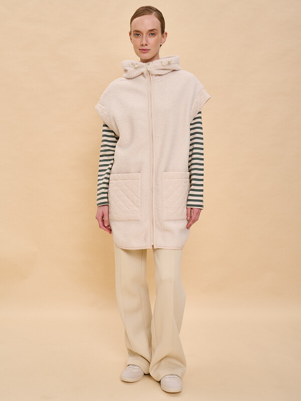 Женский жилет из модного бербер-флиса (мягкая фактура «барашка»). Жилет оверсайз-силуэта со спущенным плечом подарит вам комфорт и свободу движения. Высокий воротник-стойка и удобный капюшон защитят от холода и ветра. Объём капюшона можно регулировать внутренним эластиком со стопперами. Изделие дополнено накладными карманами, отстроченными в крупную клетку — актуально в этом сезоне. Застёжка на длинную молнию по переду. Карманы и отделка пройм и молнии выполнены из гладкого «курточного» материала — сочетание тканей разных фактур — актуальный модный тренд. Безрукавка однотонная, без принта. За ней легко ухаживать. Изделия из качественного флиса прочные, легко стираются, не линяют, быстро сохнут и устойчивы к образованию катышков. Флисовый жилет очень лёгкий, тёплый и прекрасно пропускает воздух. Модель выполнена в двух базовых цветах: чёрный жилет и серый. В линейке представлены следующие размеры: S-M (44-46); L-XL (48-50). Жилетка оверсайз подходит как женщинам, так и девушкам с разными типами фигуры. Безрукавка идеальна для прогулок, активного отдыха. Её можно надеть на толстовку — получится прекрасная альтернатива верхней одежде для ранней осени. Жилет подходит для демисезона (осень и весна) и прохладного лета. Это замечательный подарок маме, сестре или подруге на любой праздник.