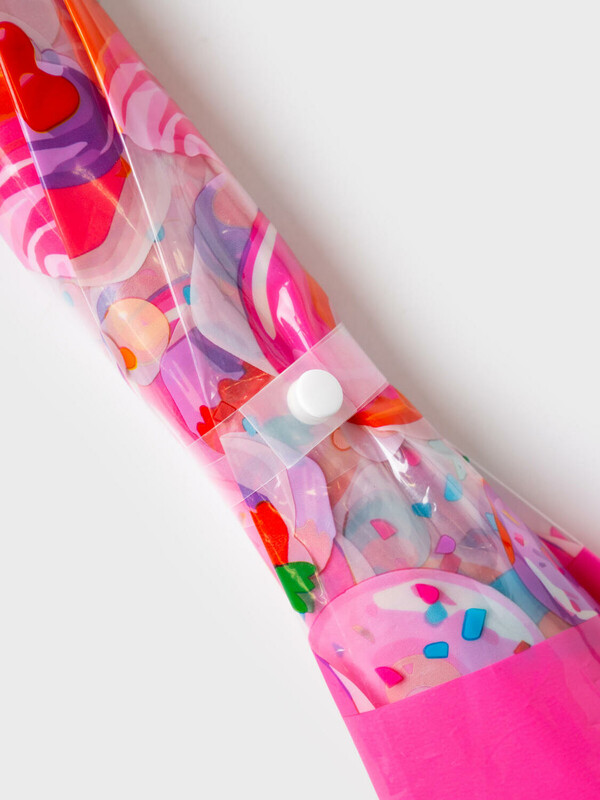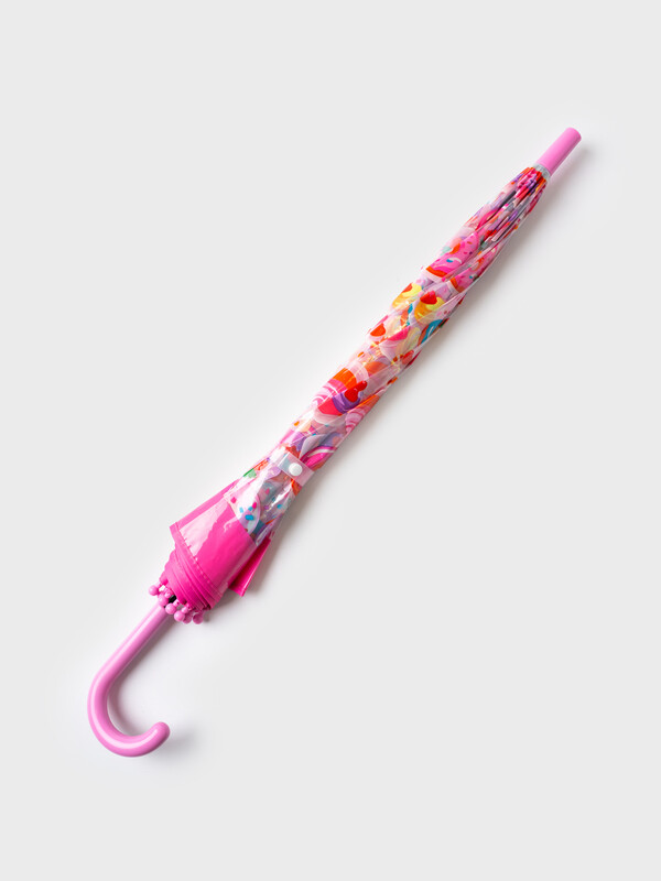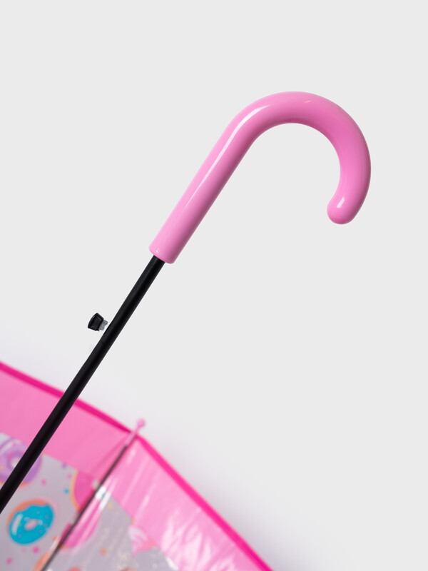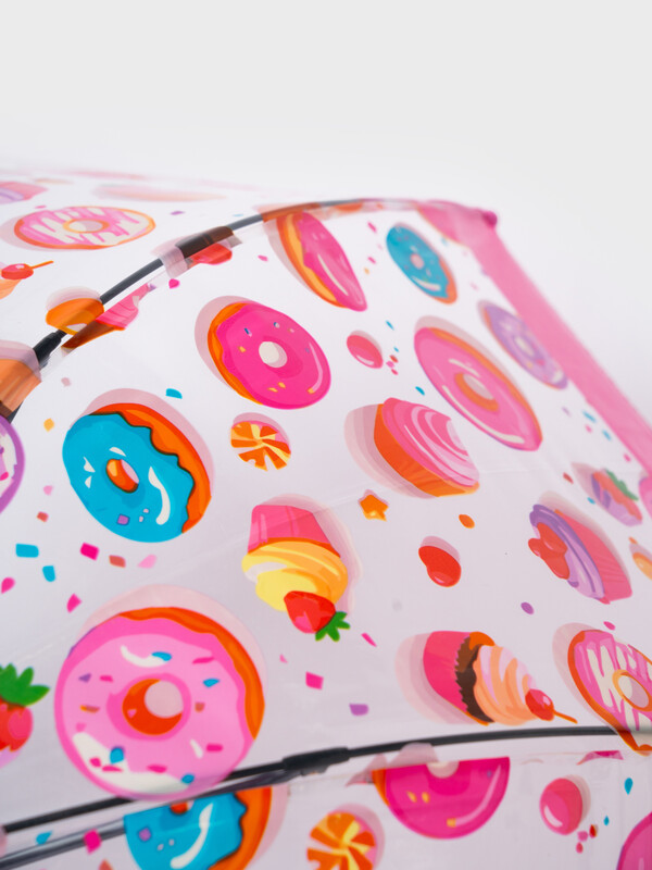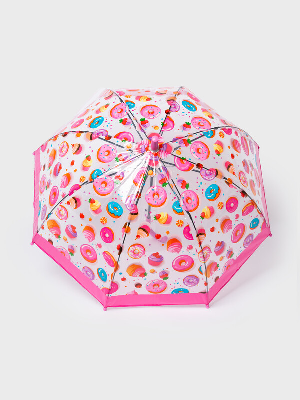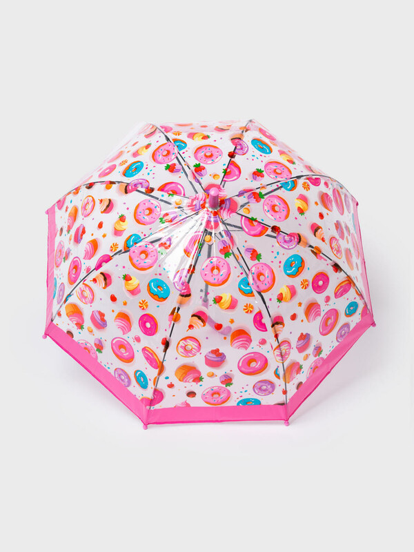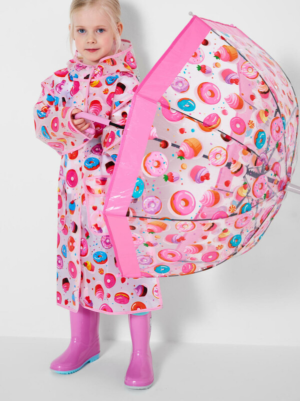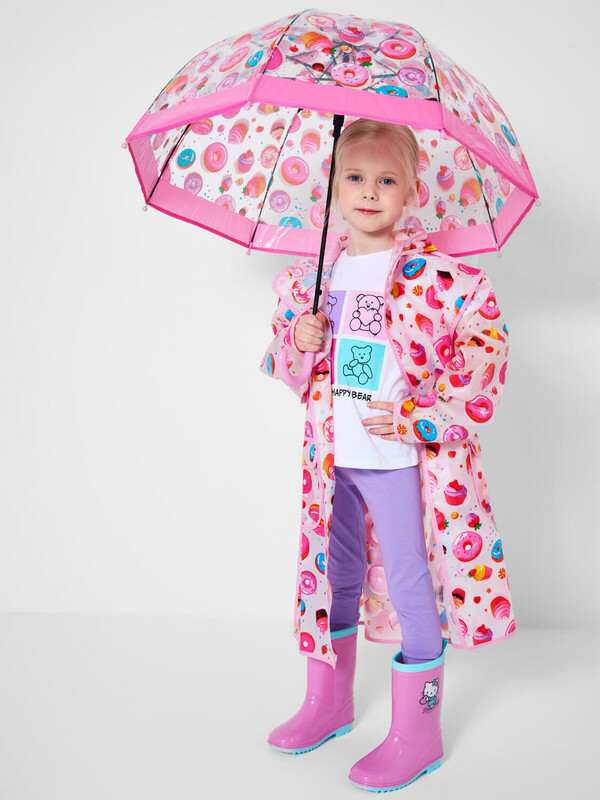 Зонт-трость с прозрачным куполом. Яркий позитивный принт повышает настроение в дождливые дни. Идеально сочетается с резиновыми сапогами и дождевиком из коллекции. Длина 68 см, диаметр купола 70 см. Механизм складывания - механический.