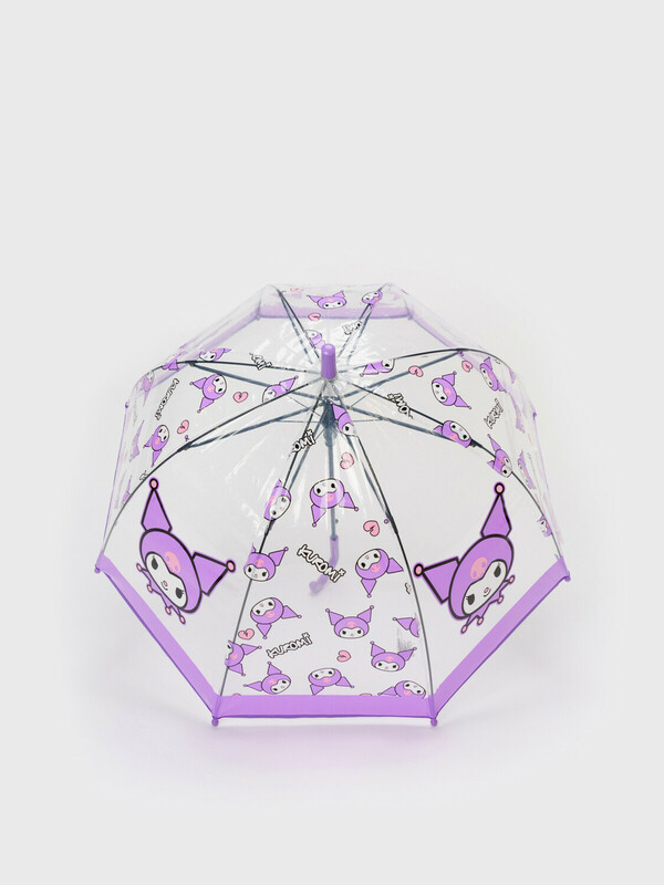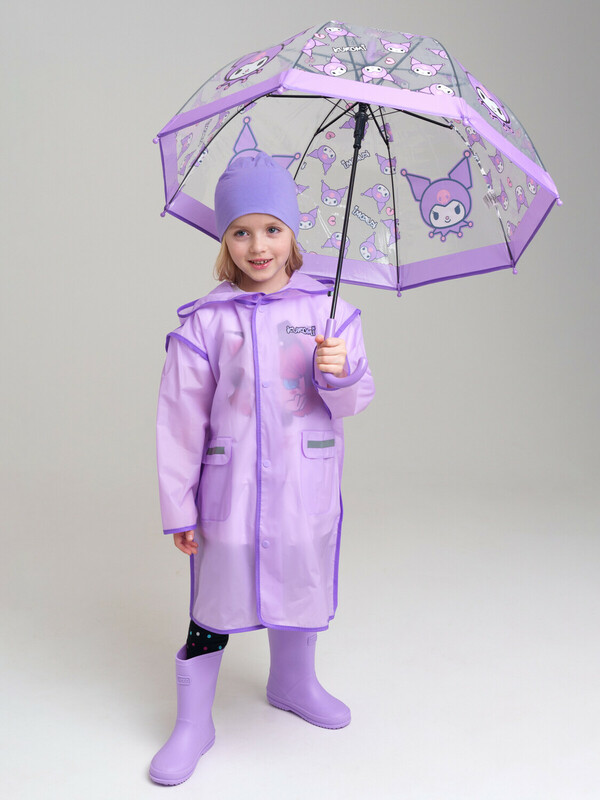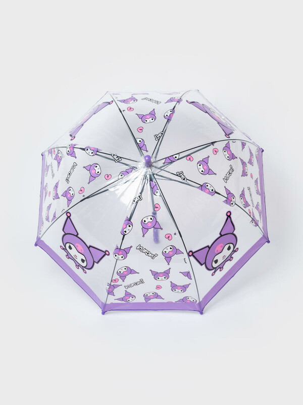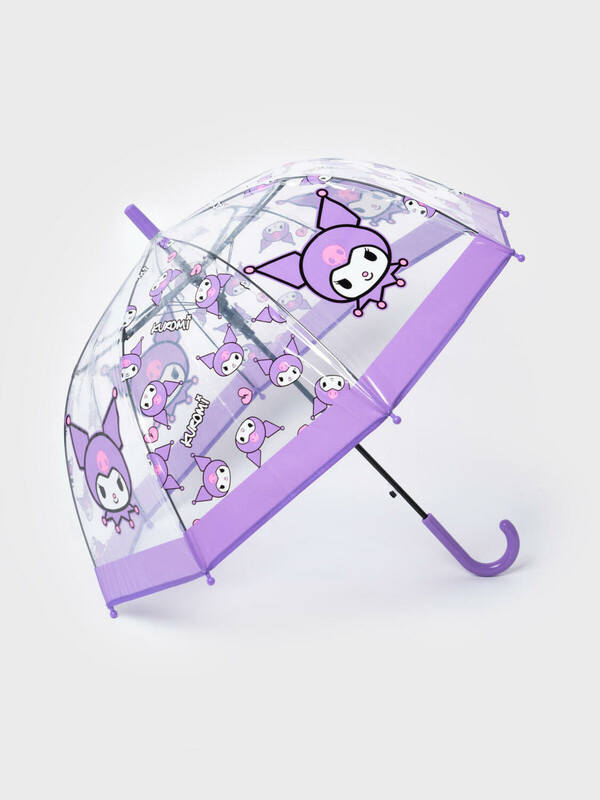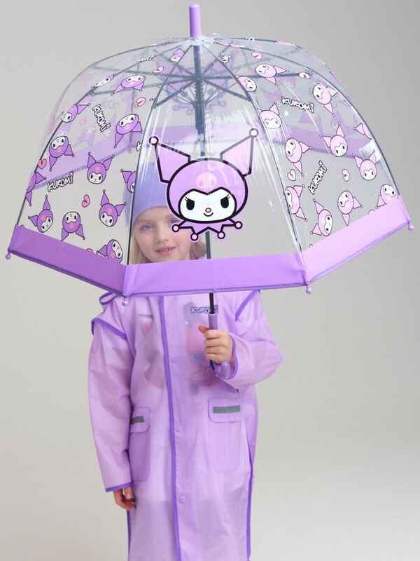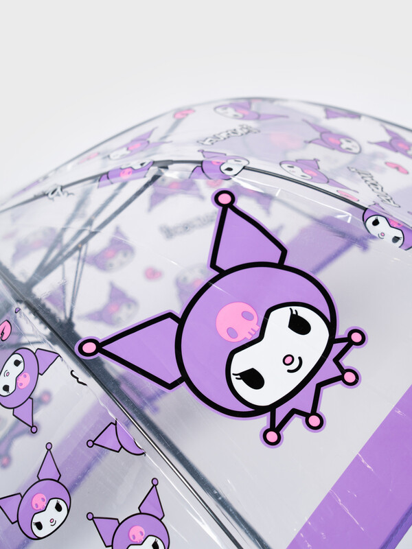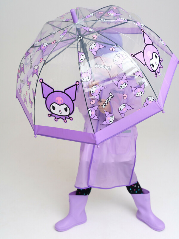 Зонт-трость детский с KUROMI с прозрачным куполом для девочки. Идеально сочетается с резиновыми сапогами и дождевиком из коллекции/ Длина 68 см, диаметр купола 70 см. Механизм складывания - механический.