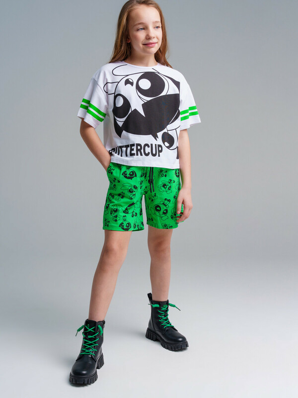 Комплект трикотажный для девочек: фуфайка (футболка), шорты