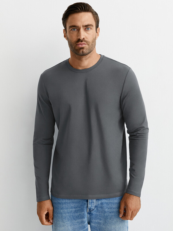 Артикул: OmT_U 1631 Лонгслив муж. прямого кроя, CO+EL Grafite (Серый)