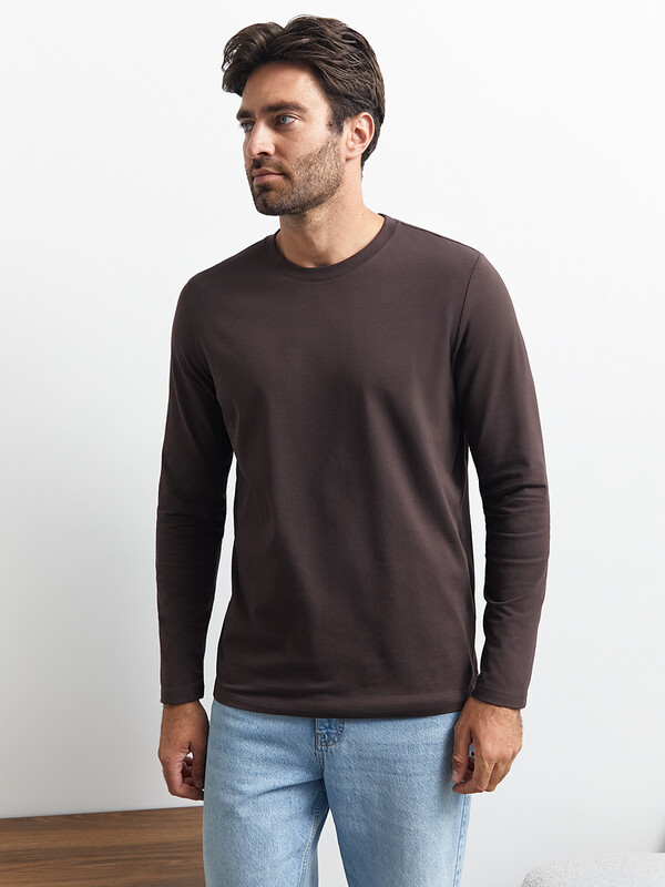 Артикул: OmT_U 1631 Лонгслив муж. прямого кроя, CO+EL Marrone (Коричневый)