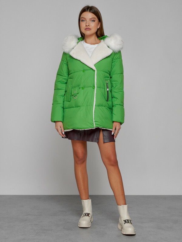 Куртка зимняя женская модная с мехом зеленого цвета 133120Z