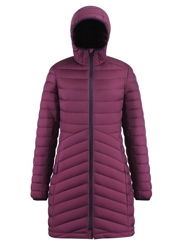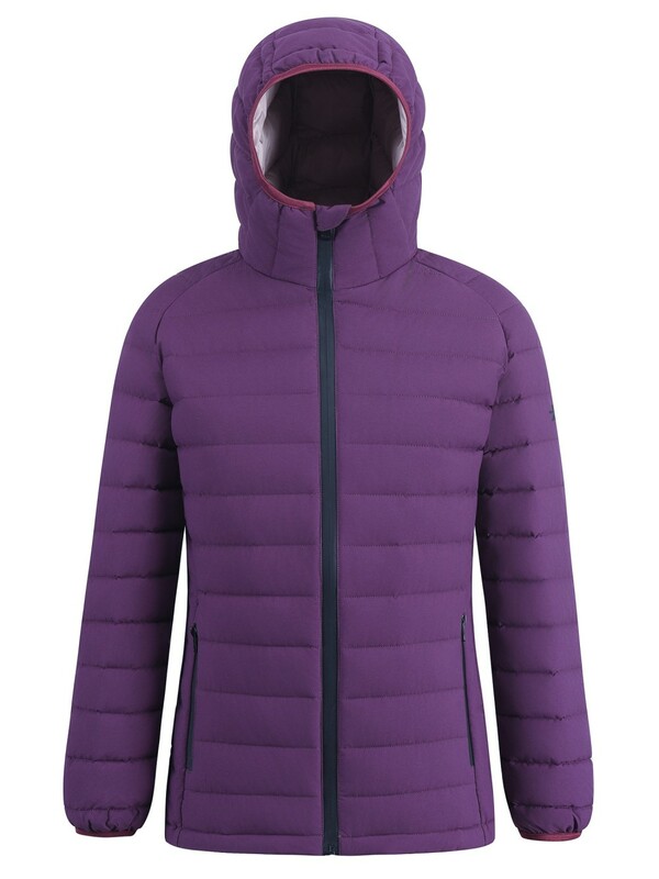 Куртка женская гибридная стёганая с капюшоном с графеновой подкладкой темно-фиолетового цвета 9626_1