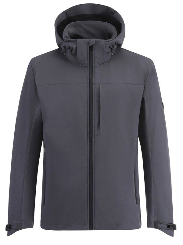 Ветровка мужская софтшелл виндстоппер с капюшоном спортивная темно-серого цвета 9617_1TC