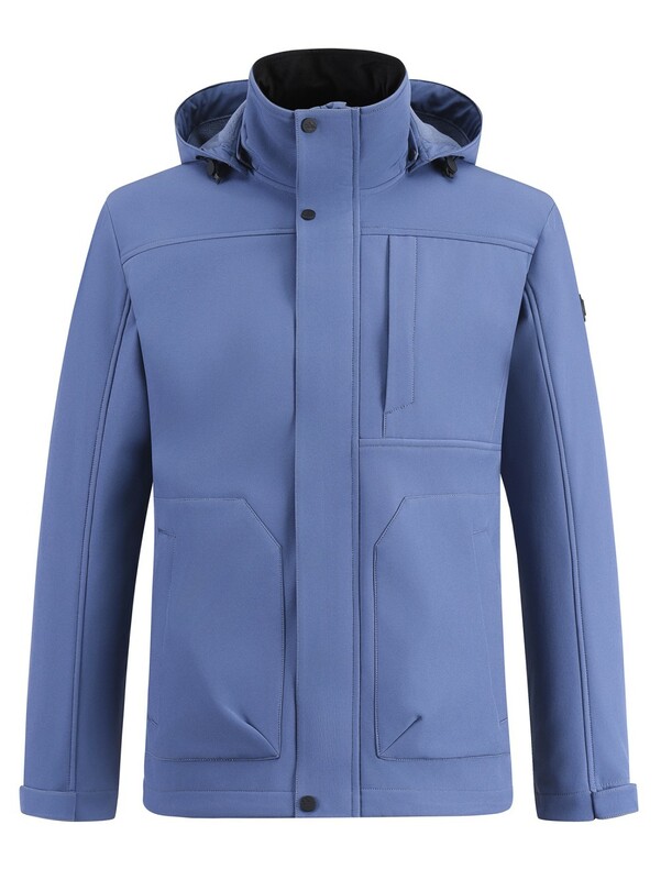 Ветровка мужская софтшелл виндстоппер с капюшоном спортивная синего цвета 9615_1S