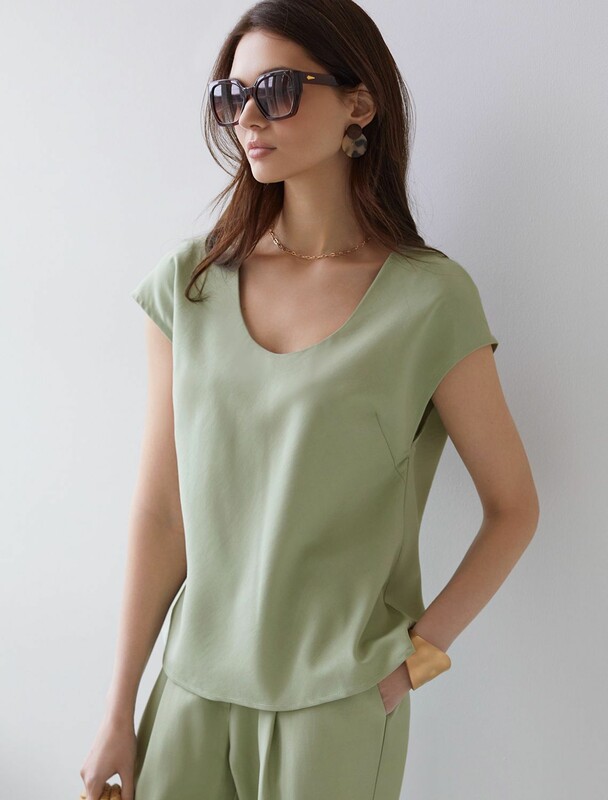 Блузка с U вырезом скроенная по косой из плотного лиоцелла