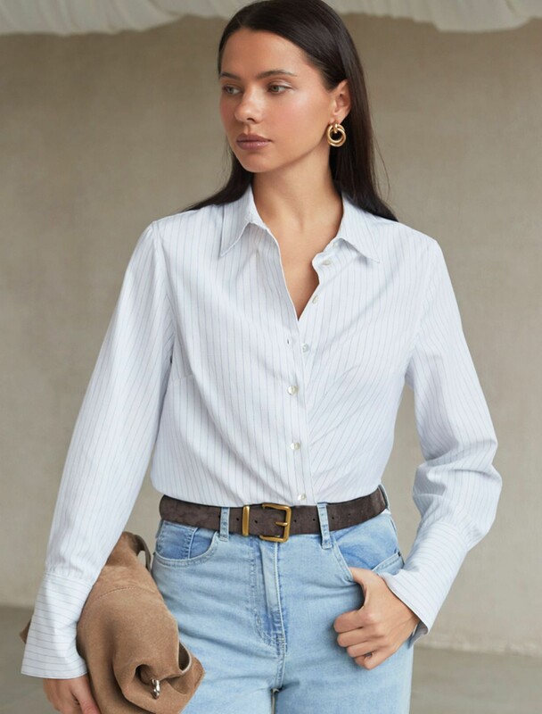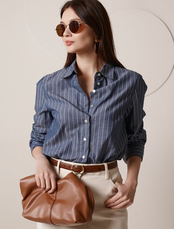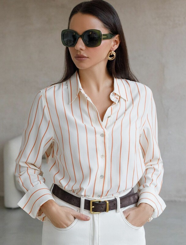 Блузка свободного силуэта в тонкую полоску из эластичного хлопка с добавлением льна