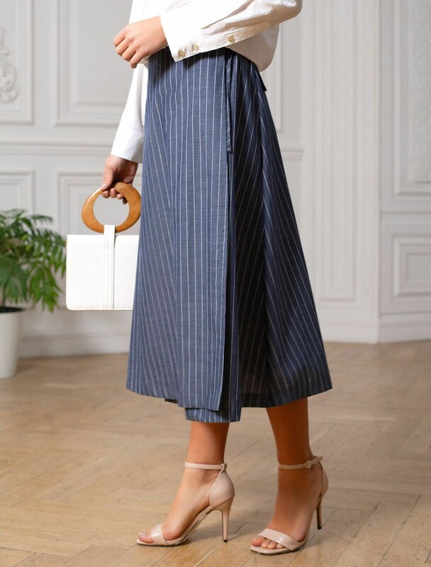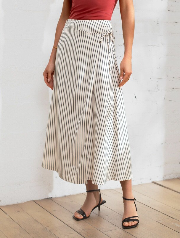 Юбка миди на запАх в полоску из легкого хлопкового поплина
