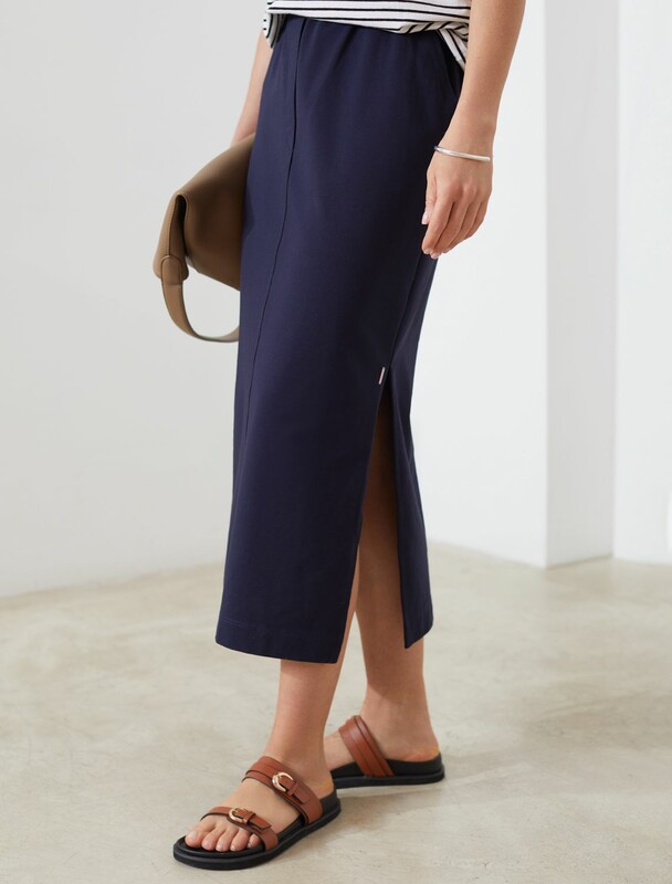 Юбка миди с двумя разрезами из премиальной поливискозы с эластаном