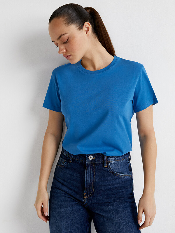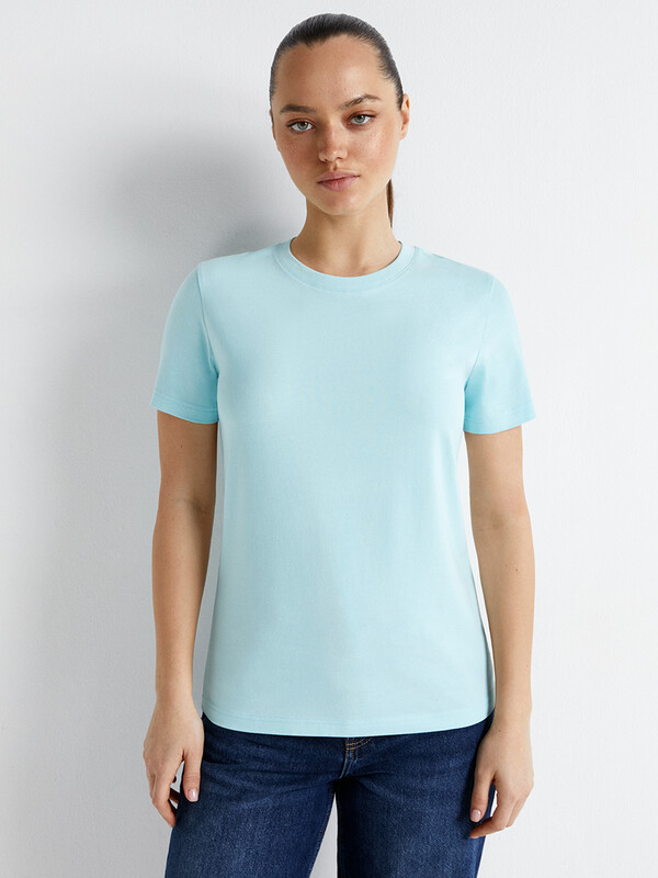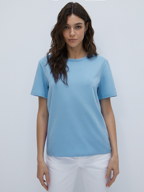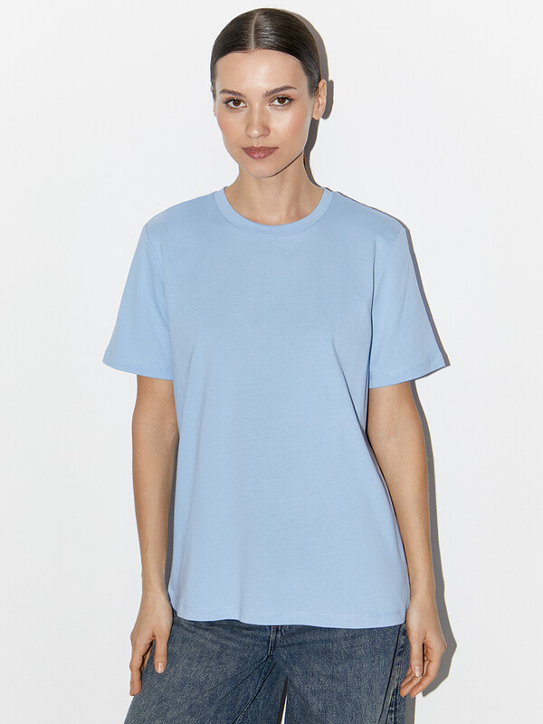Артикул: OmT_D1202 Футболка жен. прямая, CO Celeste (Голубой)