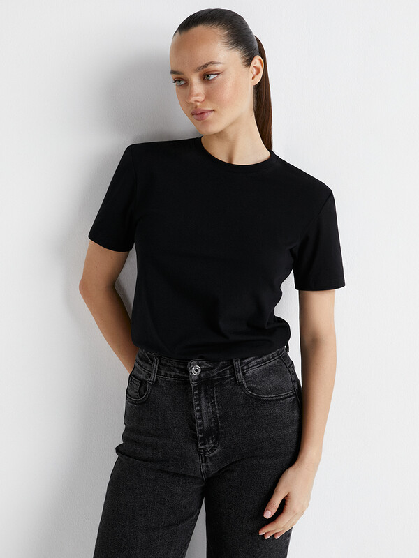 Артикул: OmT_D1202 Футболка жен. прямая, CO Nero (Черный)