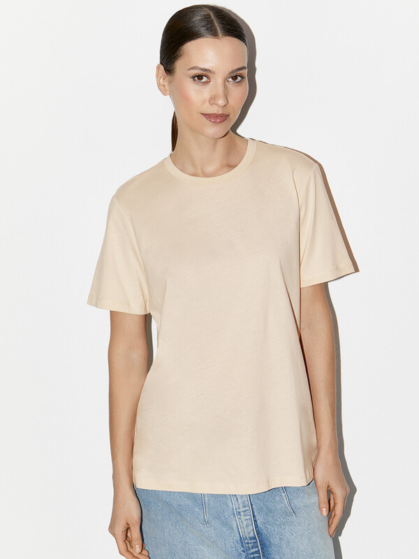 Артикул: OmT_D1202 Футболка жен. прямая, CO Caramello (Бежевый)
