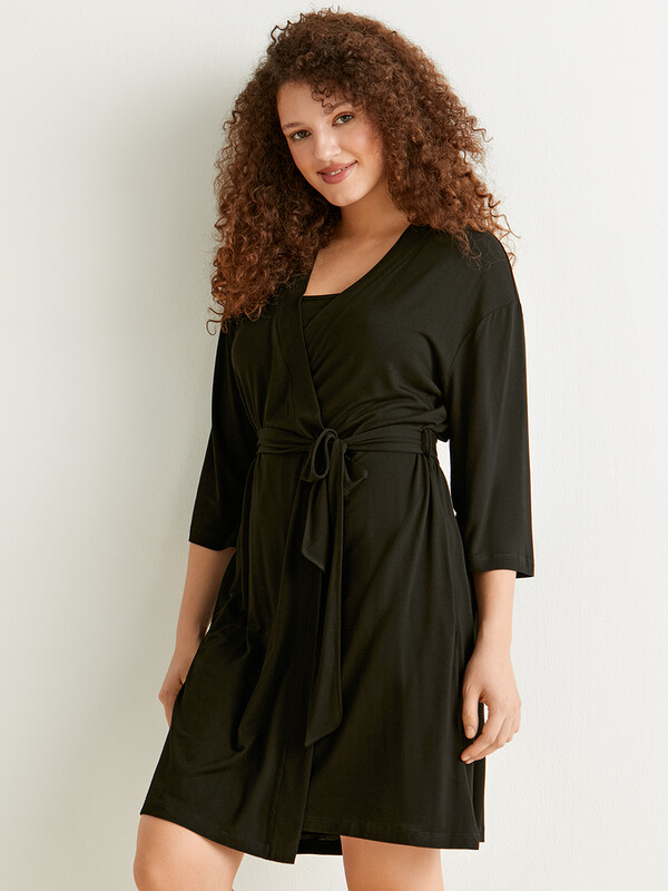 Артикул: OmD 0411D LOVE Халат женский (с запахом), PL Nero (Черный)