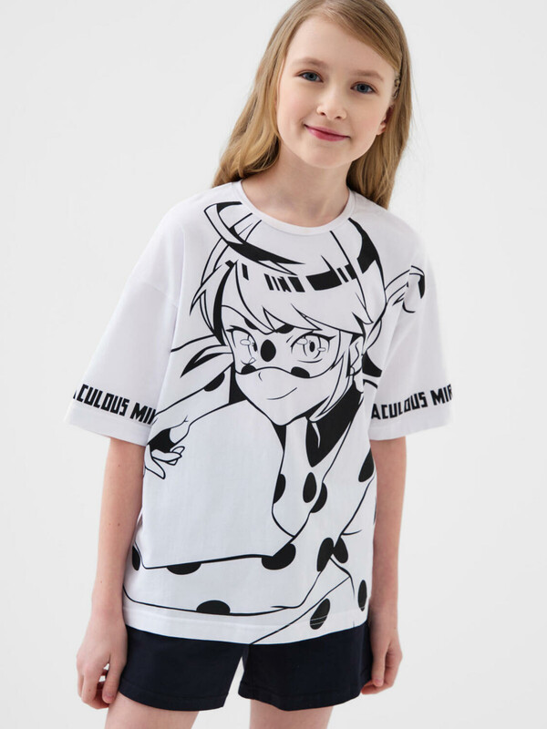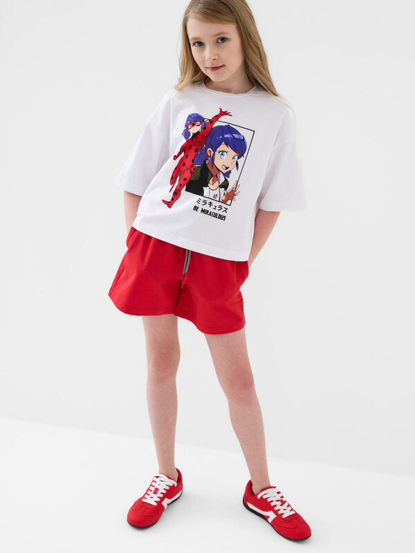 Комплект трикотажный для девочек: фуфайка (футболка), шорты