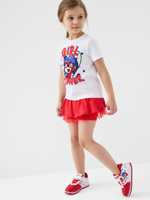 Комплект трикотажный для девочек: фуфайка (футболка), юбка-шорты