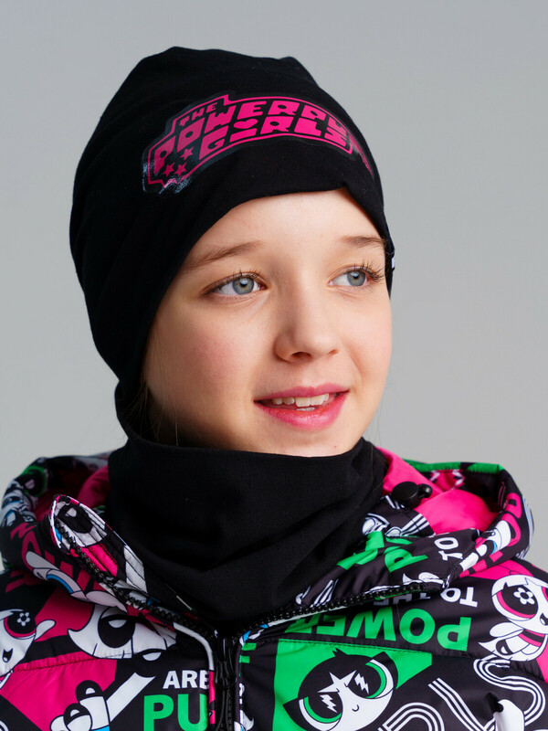 Комплект трикотажный для девочек: шапка, снуд