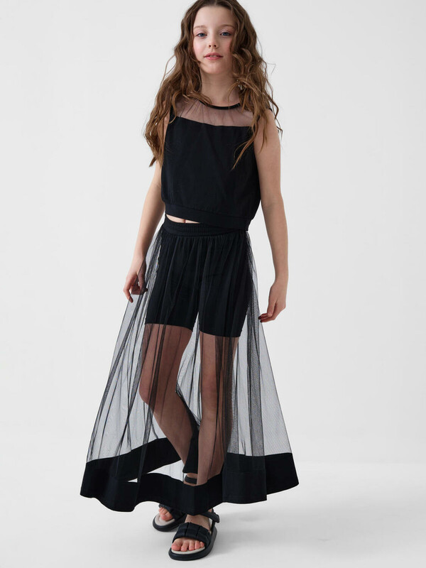 Комплект трикотажный для девочек: фуфайка (футболка), юбка-шорты