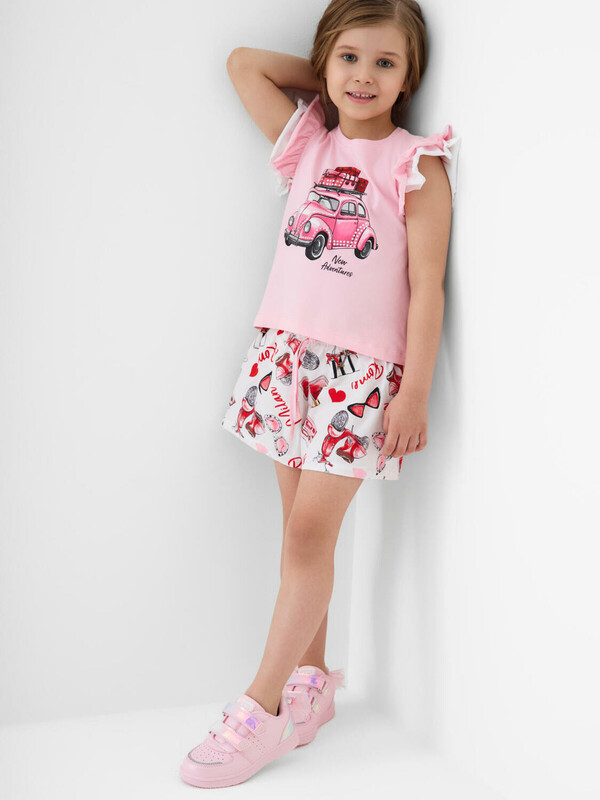 Комплект для девочек: фуфайка трикотажная (футболка), шорты текстильные