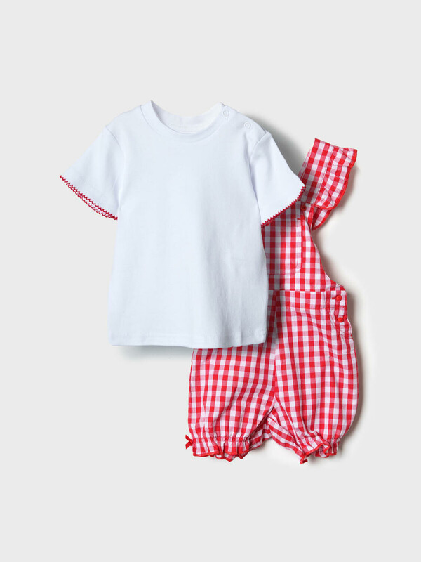 Комплект детский для девочек: джемпер трикотажный (футболка), полукомбинезон текстильный