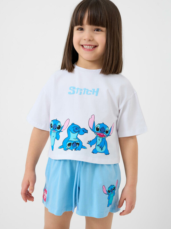 Комплект трикотажный для девочек: фуфайка (футболка), шорты