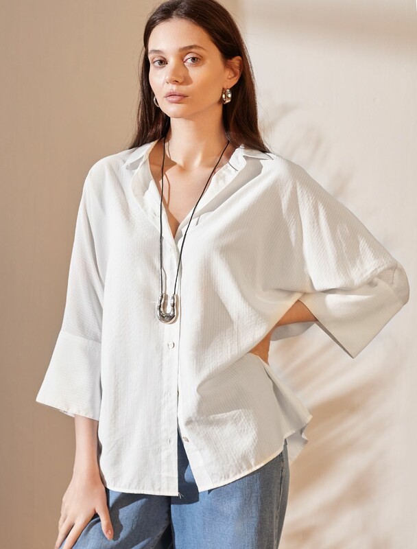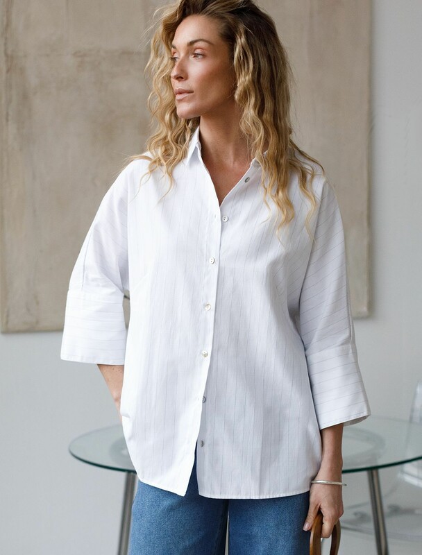 Блузка с цельнокроеным рукавом 3/4 из эластичного хлопка