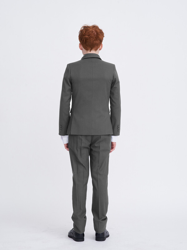 Классический костюм для мальчика из износостойкой и устойчивой к смятию костюмной поливискозы. Пиджак полуприлегающего силуэта с английским воротником, боковыми прорезными карманами с клапаном. Дополнен нагрудным прорезным карманом с листочкой и тремя нарукавными пуговицами. Застёгивается на две пуговицы. Брюки прямого силуэта немного зауженные к низу, со стрелками, боковыми карманами и прорезными задними карманами с клапаном, на втачном поясе с регулировкой и шлёвками.
