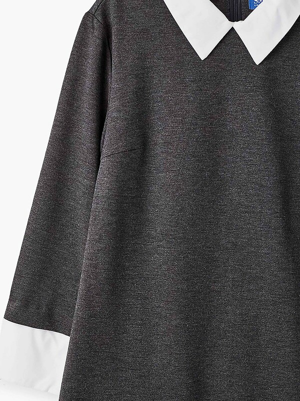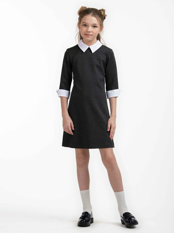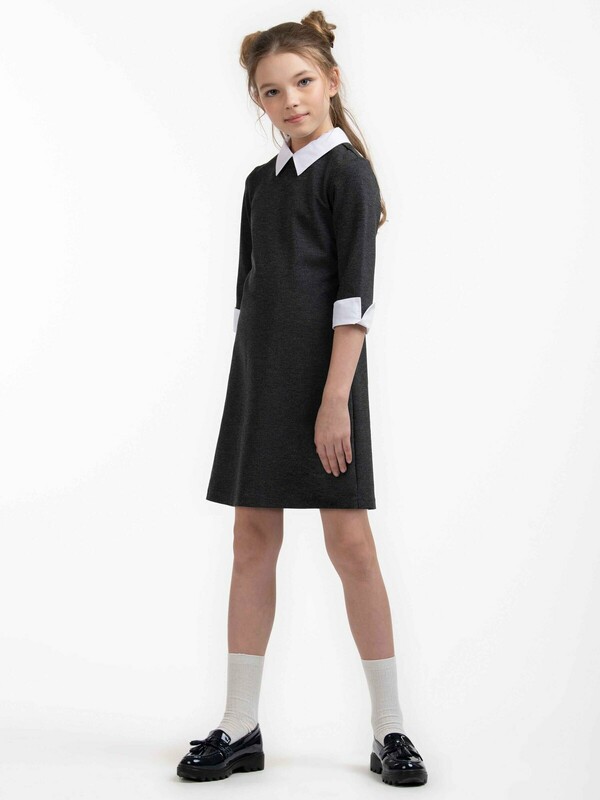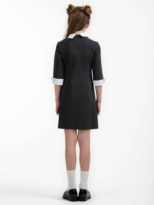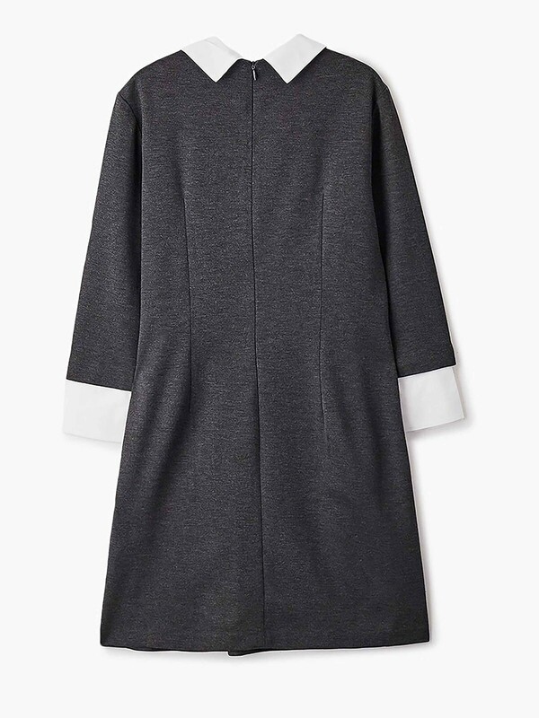 Утонченное платье А-силуэта выполненное из трикотажа, позволяющее много двигаться и чувствовать себя комфортно. Платье дополнено съемными отложным воротником и манжетами контрастного белого цвета, что обеспечивает не только удобство в уходе, но и возможность разнообразить ежедневный образ. Застежка на потайную молнию на спинке не нарушает конструкцию и обеспечивает идеальную посадку.