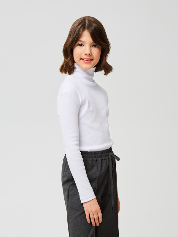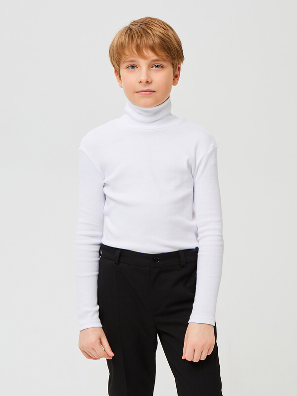 Базовая водолазка белого цвета с высоким содержанием хлопка 95%. Эластичные волокна в составе обеспечивают комфорт в движении на протяжении всего дня. Полуприлегающий силуэт не сковывает движения и отлично сидит на любом типе фигуры. Рукава втачные длинные.