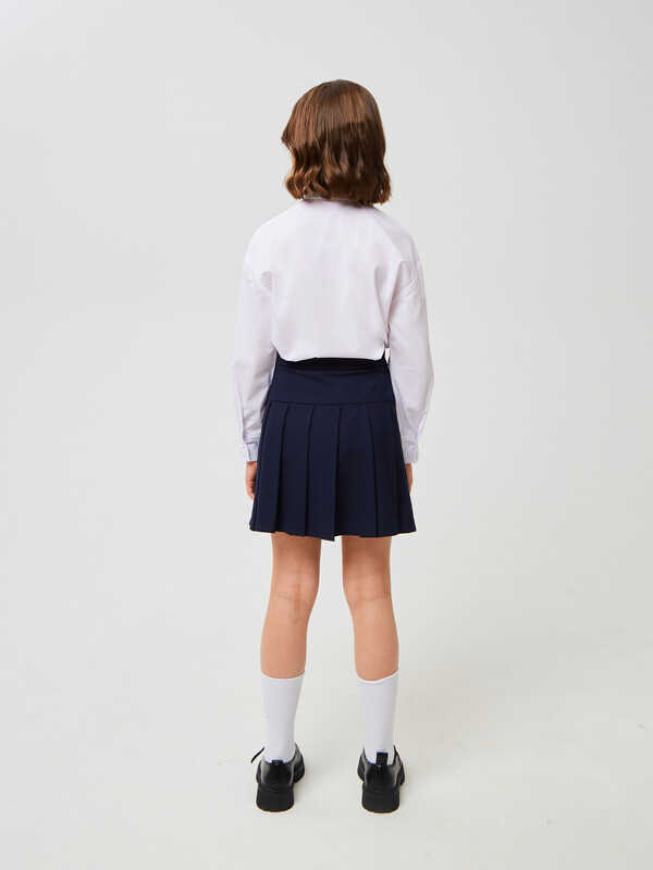 Классическая блузка для подростков из смесового хлопка с отложным воротником на стойке и длинными спущенными рукавами на манжете. Высокое содержание хлопка в составе обеспечивает отличную воздухопроницаемость и комфорт в повседневной носке. Левая сторона полочки дополнена накладным карманом. Застежка центральная на планку с пуговицами. Блузка будет прекрасным дополнением к моделям из школьной коллекции SMENA.