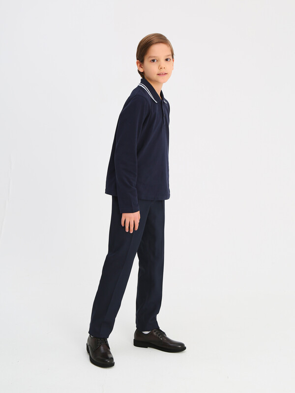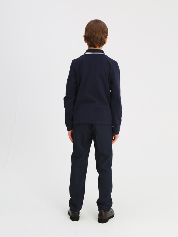 Поло из 100% хлопка с длинными рукавами и отложным воротником рубашечного типа, с центральной укороченной застежкой по переду на молнии.