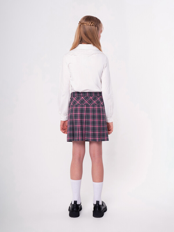 Элегантная юбка в складку на кокетке из износостойкой и устойчивой к смятию поливискозы в серо-розовую клетку. Эластичные волокна в составе обеспечивают комфорт в движении. Застёгивается на потайную молнию в боковом шве и пуговицу на втачном поясе.Пояс с регулируемой резинкой обеспечивает удобную посадку и комфорт в ежедневной носке.