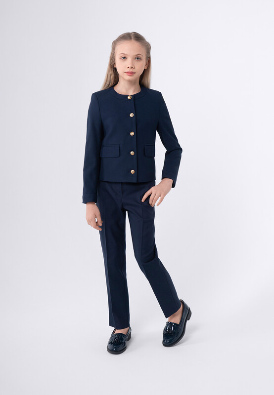 Прямые брюки со стрелками для девочек изготовлены из немнущейся костюмной ткани высокого качества, которая идеально подходит для брюк данного фасона. Высокая талия и пояс на резинке не стесняют движений. Застежка на молнию, петлю и пуговицу на поясе.Брюки имеют карманы достаточной глубины. Брюки элегантно смотрятся на девочках любого роста.