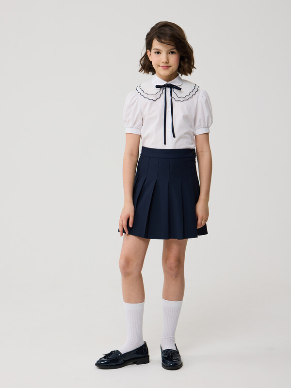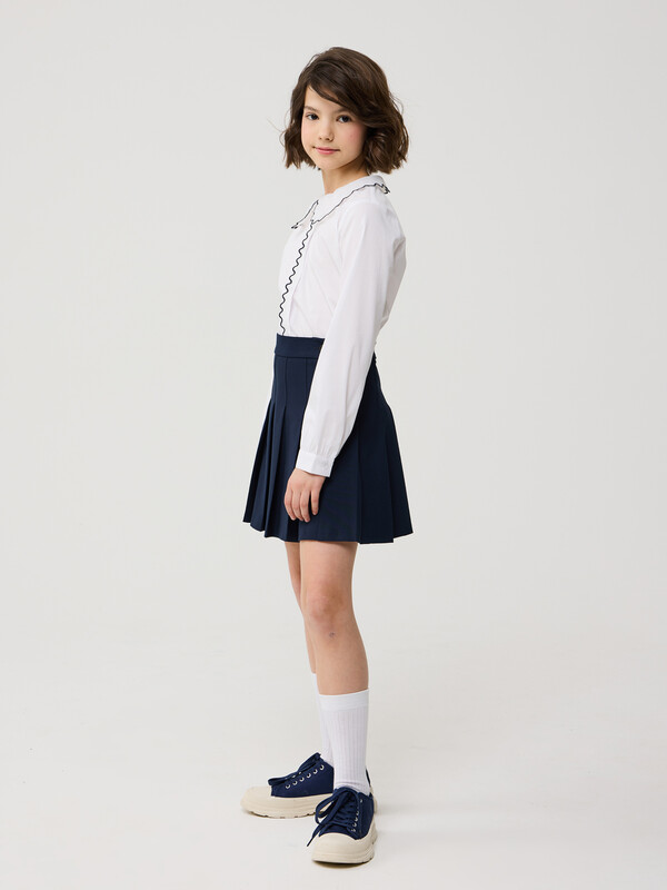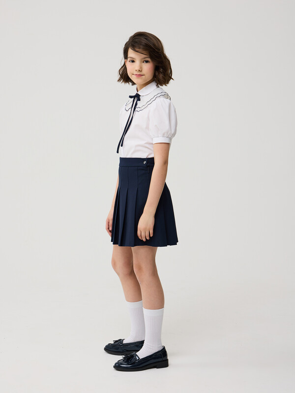 Элегантная юбка тенниска в складку, из износостойкой и устойчивой к смятию поливискозы. Складки частично застрочены Застёгивается на потайную молнию в боковом шве и пуговицу на втачном поясе. Пояс с регулируемой резинкой обеспечивает удобную посадку и комфорт в ежедневной носке. Эластичные волокна в составе обеспечивают комфорт в движении.