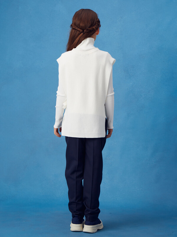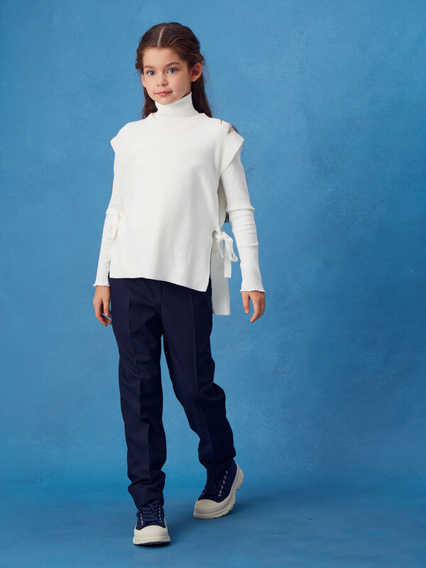 Удлиненный жилет из хлопка идеально впишется в повседневные школьные будни. Сегодня все любят оверсайз, поэтому широкая плечевая линия и силуэт безрукавки, доходящий до бедра, придётся как нельзя кстати в сочетании с брюками палаццо или расклешённой юбкой. Особо ценен жилет зимой, когда точно не помешает дополнительный тёплый слой в одежде.