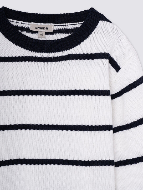 Универсальный и стильный джемпер для школы станет отличным выбором на каждый день. Мягкий, легкий и приятный к телу благодаря материалу из 100% хлопка, он обеспечит комфорт в течение всего дня. Изделие выполнено в полоску, что добавляет образу динамичности и современности. Такой дизайн легко сочетается с различными элементами гардероба, делая его идеальным как для повседневной носки, так и для школьных мероприятий.