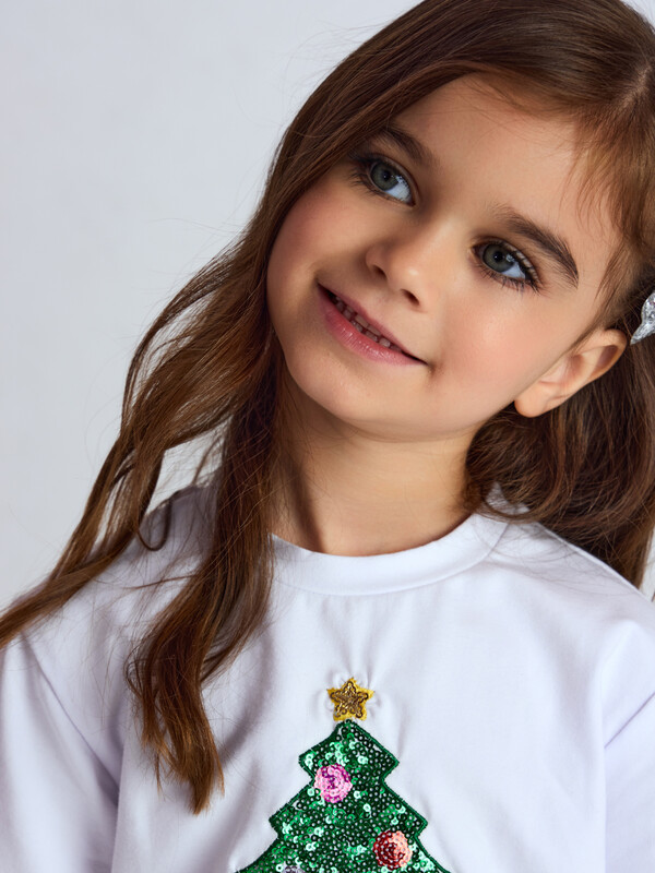 Хлопковая футболка с рисунком из пайеток. Изготовлена из дышащей ткани, она обеспечит комфорт в течение всего дня. Свободный силуэт и широкие рукава позволяют чувствовать себя свободно и уверенно. Эта вещь идеально подходит как для праздника, так и на каждый день.